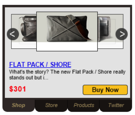 Take the following example, an ad with product image carousel with cart system and pricing info. All the right ingredients to help your customer make a buying decision.