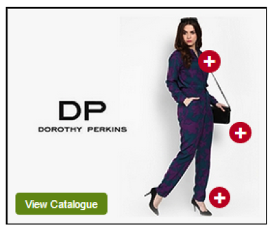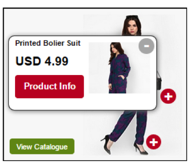 You can fulfil such needs with a retail catalogue where the image is embedded with hotspots. It can be an image of a model wearing all the items you are selling or showcasing for the season. Position the hotspots on the different aspects of the model’s attire, as shown in the example below. With each hotspot featuring various items you are selling like shirt, handbag, shoe, and many more, users are able to microscope on the items they are interested in.