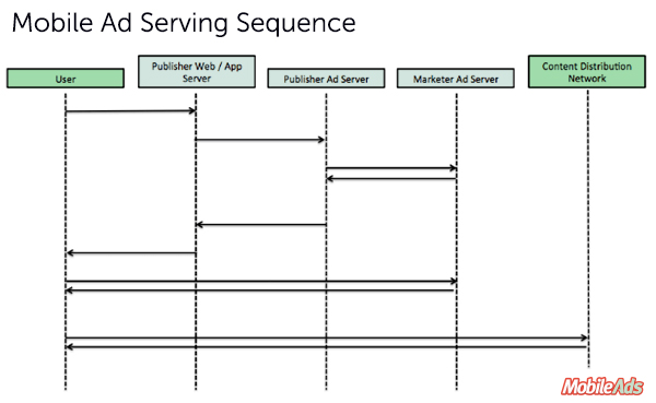 In mobile environments, connection speeds matter. The following diagram shows the mobile ad serving sequence.