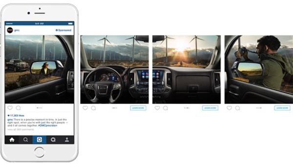 Instagram has reported that the carousel ad campaign is picking up momentum in the U.S. and here’s an example of GMC’s ad campaign that featured a panoramic interior view of the new Sierra.